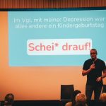 Auf beeindruckende Weise wurden jedoch auch die Möglichkeiten aufgezeigt, angesichts eines solchen Schicksalsschlags, wieder zurück ins Leben zu finden. So schloss die Lesung mit einem „Happy End“: Dr. Thomas Reinbacher hat es mit der Hilfe seiner Familie und professioneller Unterstützung vermocht, einen Weg aus dem Tief der Depression zu finden. Seit dieser Zeit engagiert er sich dafür, das Thema in die Öffentlichkeit zu tragen und Betroffenen wie Angehörigen Mut zu machen, die Hoffnung nicht aufzugeben. Dabei wurde deutlich, dass es möglich ist, selbst aus der ärgsten Krise noch gestärkt hervorgehen zu können.